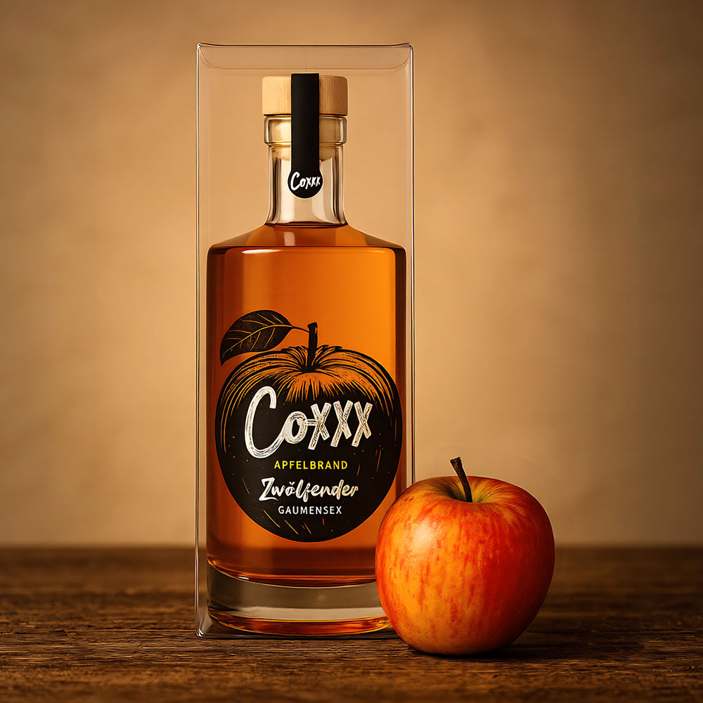 Ein Brand, der hält, was er verspricht: Coxxx Apfelbrand – Gaumensex in flüssiger Form. Entwickelt haben wir ihn selbst, um noch tiefer in die Welt der Spirituosen einzutauchen und Neues zu lernen. Nur 50 Flaschen sind entstanden – jede davon ein kleines Experiment zwischen Design, Handwerk und Genuss.